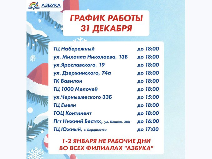 🎄График работы магазинов «Азбука» в новогодние праздники🎄