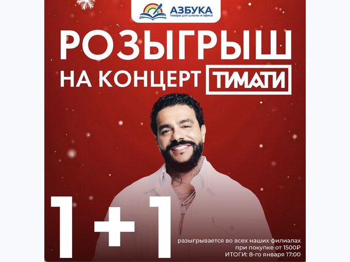 Мы разыгрываем билеты на Тимати на две персоны 🔥🔥Розыгрыш проходит во всех филиалах «Азбука»